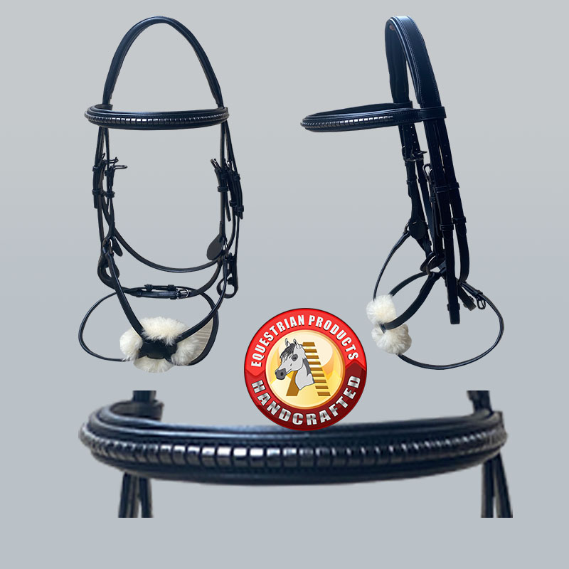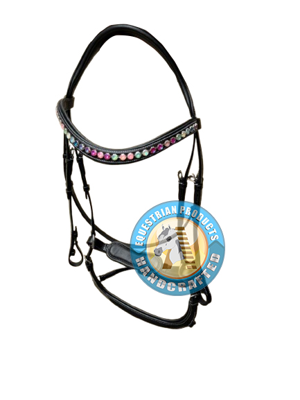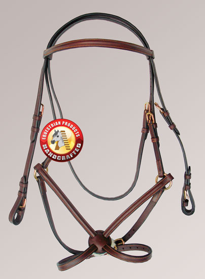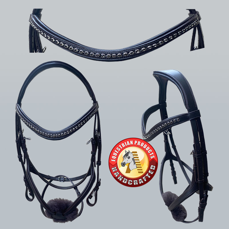 Bridle with raised browband and Mexican cross noseband. Gold plated fi…
